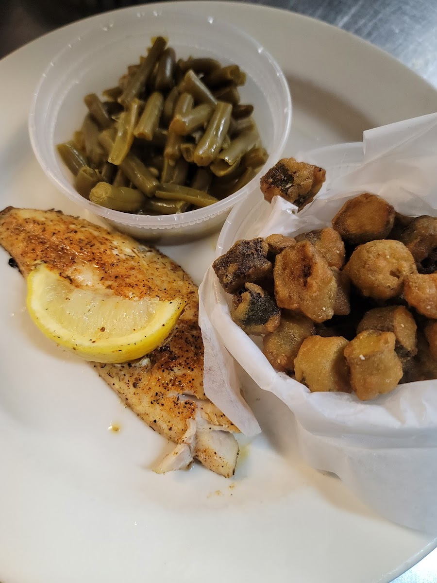 What is lacking in atmosphere in this strip shop center location with an overly open bright lit room, is forgiven with the first bite of great fried catfish. With all the options for sides we tried a mixture. Fried okra & squash get my highest vote. The service was very friendly, even going the extra mile to find honey not on the menu! I was won over & look forward to coming back. The atmosphere totally forgotten when we paid the very reasonable bill!